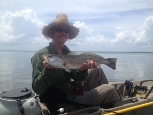Ended up being non-stop action for a good couple hours, even with a couple dolphin lurking nearby feeding on something. Finished the day with 5 trout and 2 quality redfish and surprisingly no trash fish! They were the first quality reds I have caught in the Banana River after numerous years of coming down here to fish when visiting Cindy’s parents. The bite turned off after the last big red, so we decided to head back in before the thunderstorms so we could finish today’s chore of mowing the lawn.
