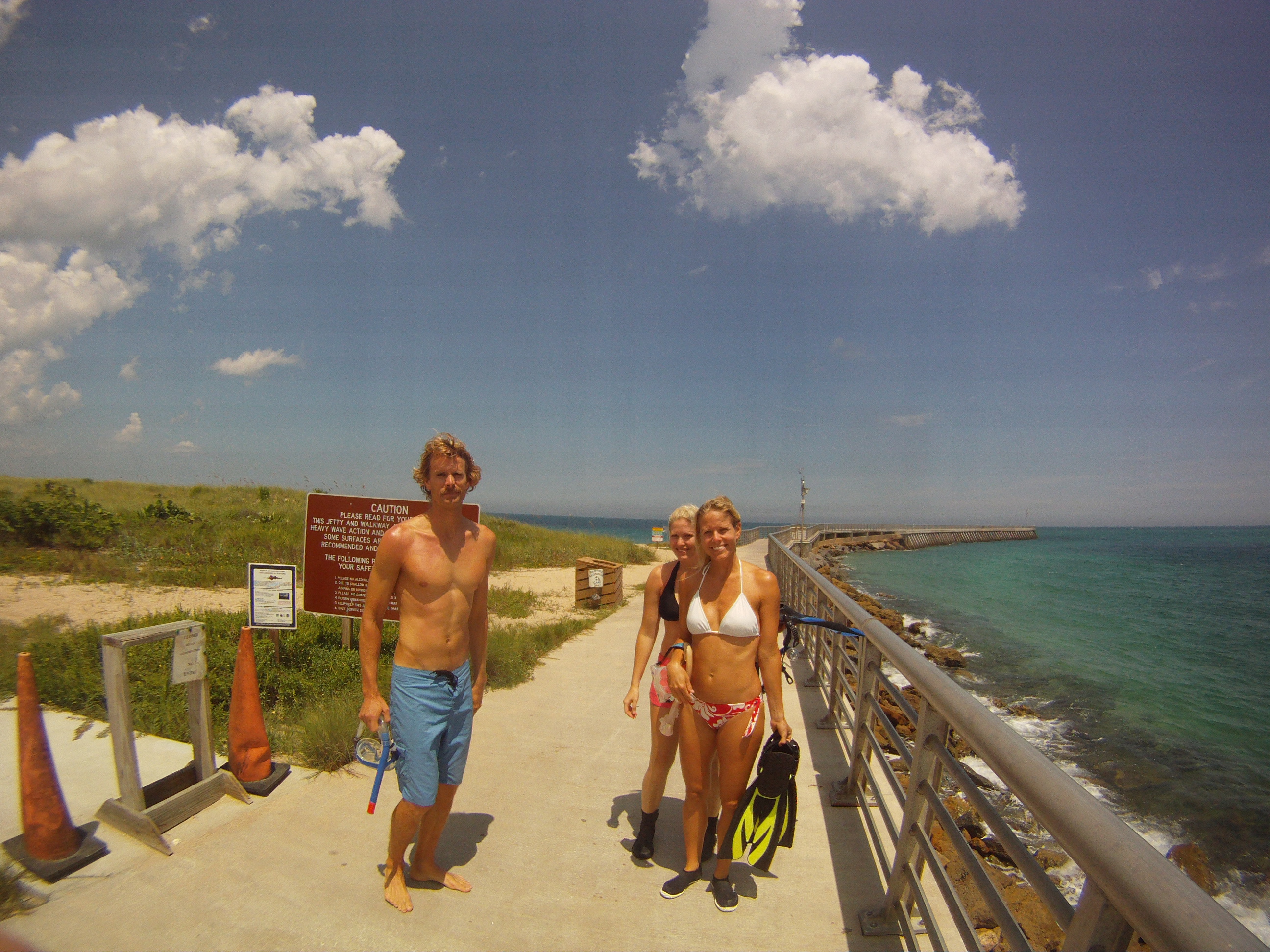 Started out on the beach side and snorkeled around the north jetty inside the inlet. Saw all sorts of life, including an immense about of snook, a few manatees, sheepshead, goliath grouper and other such fishes. Tide started ripping out once we were about a quarter of the way into the inlet. Ended up choosing to turn back around and go back around the north jetty to the beach side for an exit.