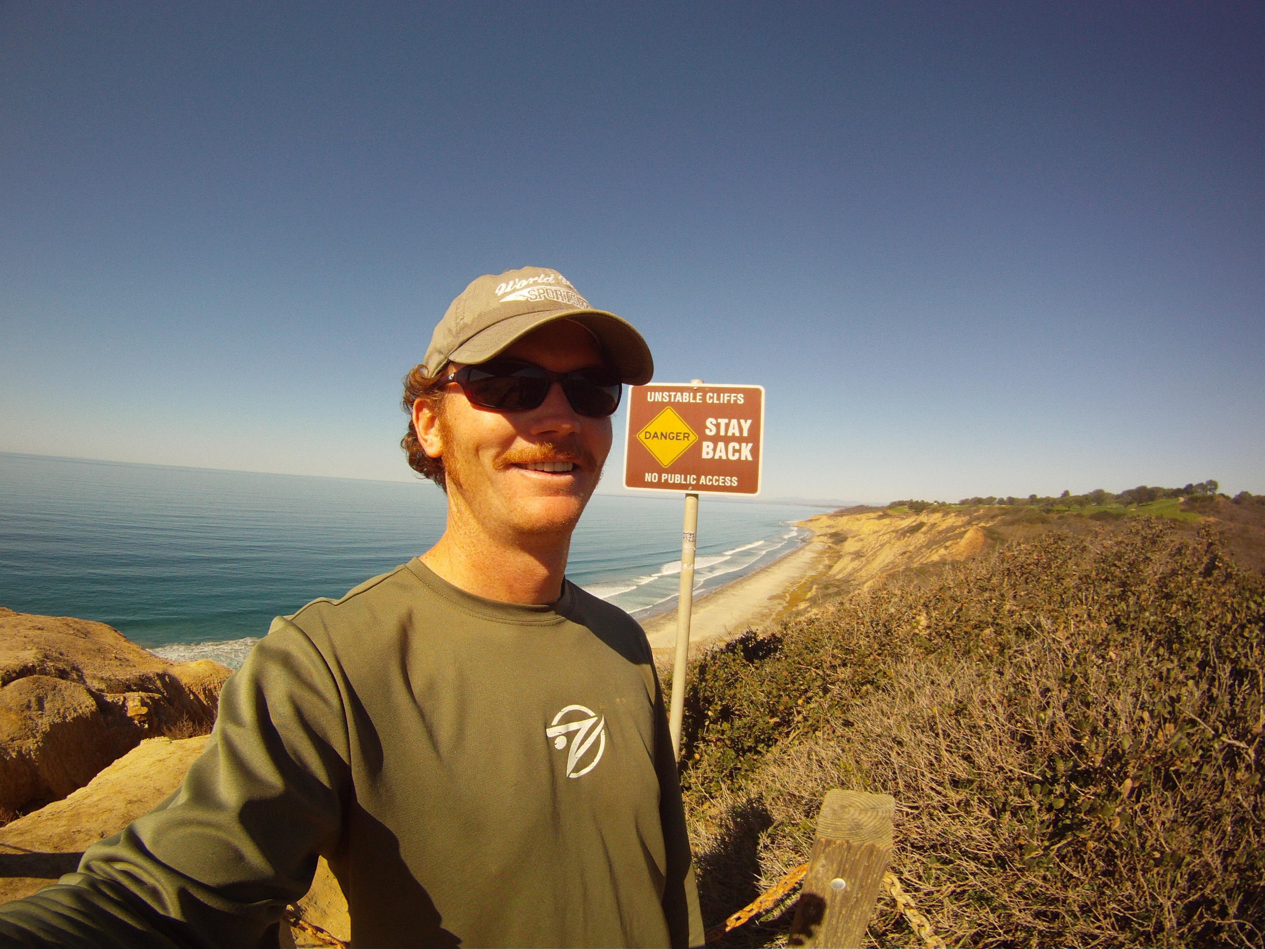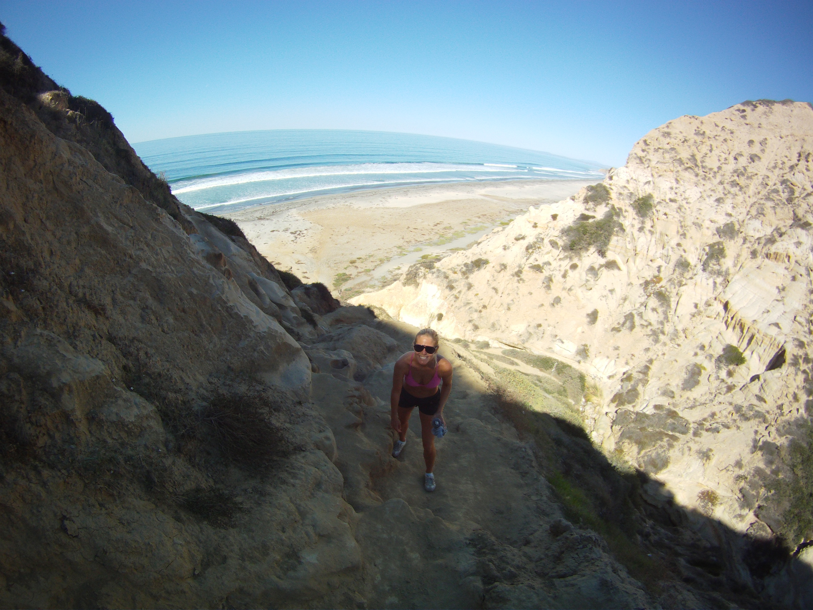 Woke up Monday to similar conditions of sunny, warm and light winds. Surf wasn’t looking great outside our place, so we decided to load up the car and take a trip further north near Torrey Pines. Could only fit 1 surfboard in our rental Altima, but didn’t end up using it. First stop was Torrey Pines State Park which is just north of the famous golf course. Changed into some more appropriate hiking clothes and shoes and headed off on the trails towards the beach.