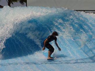 Refreshed after a nap, we ventured out on the bikes heading south along the boardwalk thru Mission Beach. Great people watching along the way and nice to see roller blades still in fashion here. Stopped for a cold beverage at a place called the WaveHouse, which is a huge outside bar with a couple standing wave machines. Entertaining to watch people surf it.