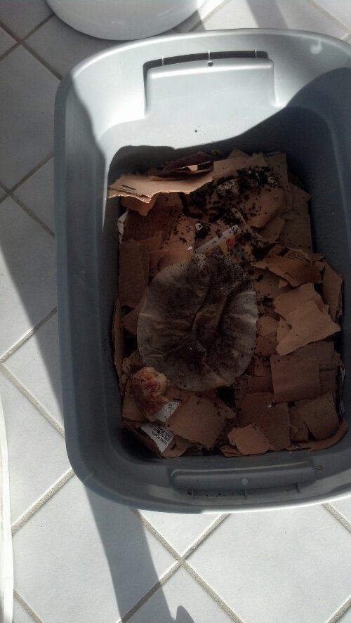 The second project is a worm composting tub. Much simpler to construct, but it needs a couple weeks to ferment before buying and adding the red wiggler worms. Nice way to compost leftover food scraps, especially with our vegetarian diet these days. Plus they output some of the best dirt and worm tea for enhancing growth of our veggies.