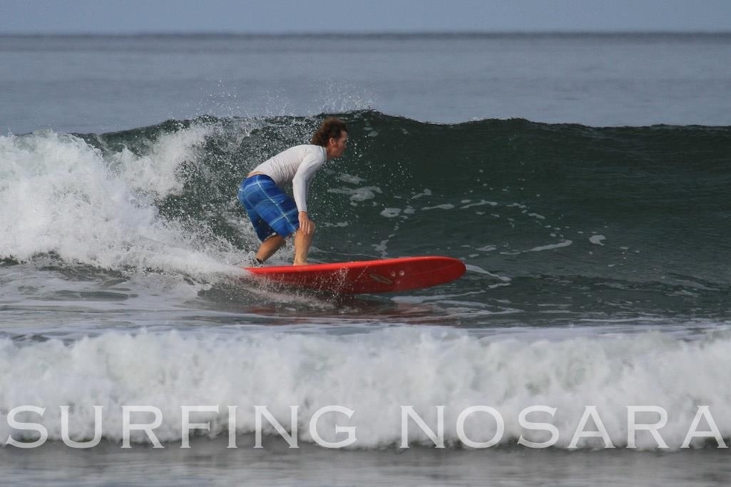 Hit the waves again this morning around 730 for our final surf session of the trip. Waves were not very big today, but caught some really clean lefts and rights over about 4 hours. Beautiful day with really clear water. You could see schools of fish scattering as your cruised down the beach on a wave. Surfed today on the south end of the beach, so we could hopefully make the Surfing Nosara web page photos. Cindy made their page and we both are on their Facebook page.