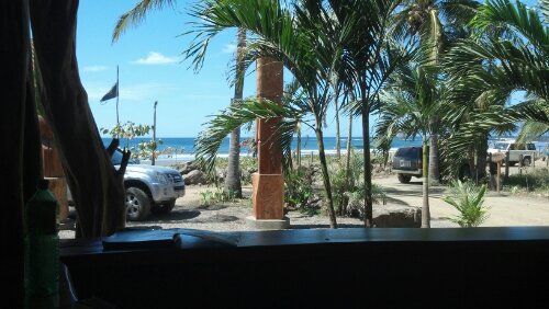 Roads around here are all gravel, with some in decent shape and most in really bad shape. Many washouts, rocks, downed trees, etc. to be aware of. Makes for an exhausting ride as driver or passenger. Hard to believe anything on cars here can last very long between the dust, Horrible road conditions and salty air. Made it up to Marbella around 1130am and found a nice beachfront restaurant for a couple Imperials and lunch. I enjoyed delicious chicken nachos dish and Cindy had some extra plump fish tacos with beans and rice.