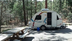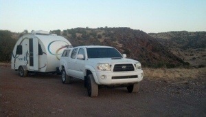 Woke up and realized that we had a lot to do today. We were out of water in the trailer, and needed to find an RV dump site. The truck and trailer were also in desperate need of a washing. We found a car wash in soccorro which had a lane that was high enough to pull our trailer through which worked out great. Then it was off to find a (hopefully free) dump station, which we found at a Giant gas station right off the interstate in Albuquerque. Driving through Albuquerque was really interesting in that it is this large, sprawling city in the middle of the desert and you can look out from the road and see the entire city at once. Ok, so we were still in need of potable water for the trailer, so we found an inexpensive campground just north of Santa Fe in the Santa Fe National Forest called Black Canyon Campground which had good reviews online and had spigots with potable water- perfect! Turned out to be a really nice, quiet campground in the pine covered mountains (what a change from the desert!). There was a mountain trail within the campground so after getting settled we headed out for a hike. Turned out to be quite a strenuous hike with some steep inclines. A good workout after a busy day of driving. Also noticed some snow still on top of the mountains, as well as spotted a few mule deer. Headed back to our campsite and cooked up a pot of vegetarian chili which definitely hit the spot:)