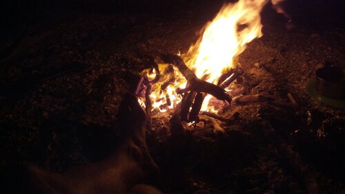Brought along some fresh mahi, onions, tomatoes and leftover orzo w/ mushrooms. Combine the mahi, onions and tomatoes w/ ranch dressing in a tin foil pouch and drop it on the fire for 20 minutes. A recipe we originally learned about in Tahiti… Deeelish!
