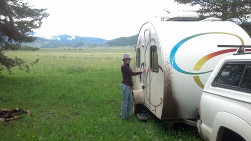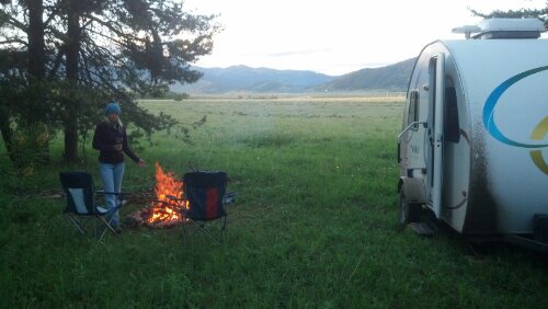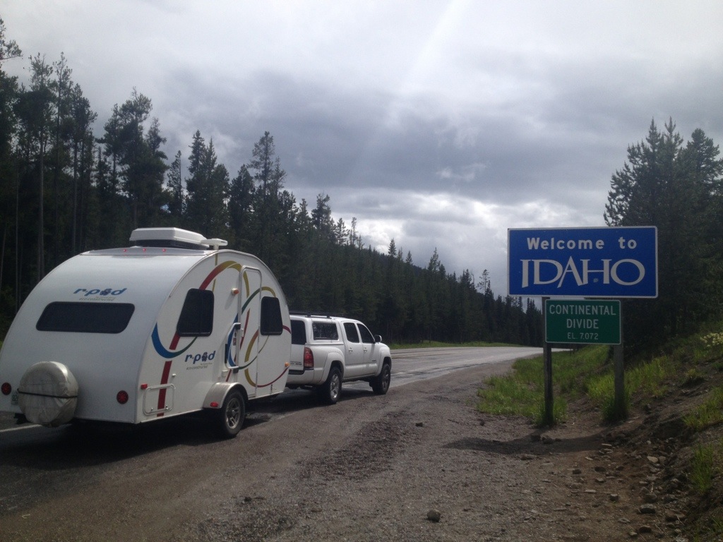 Found a free campsite just north of island park. Comfy spot with a bit of road noise but a nice mountain view out our back window. Had a quick downpour while finding the spot, so the trailer got its first mud bath. Supposedly some great fishing near here in an area called Henry’s Fork.