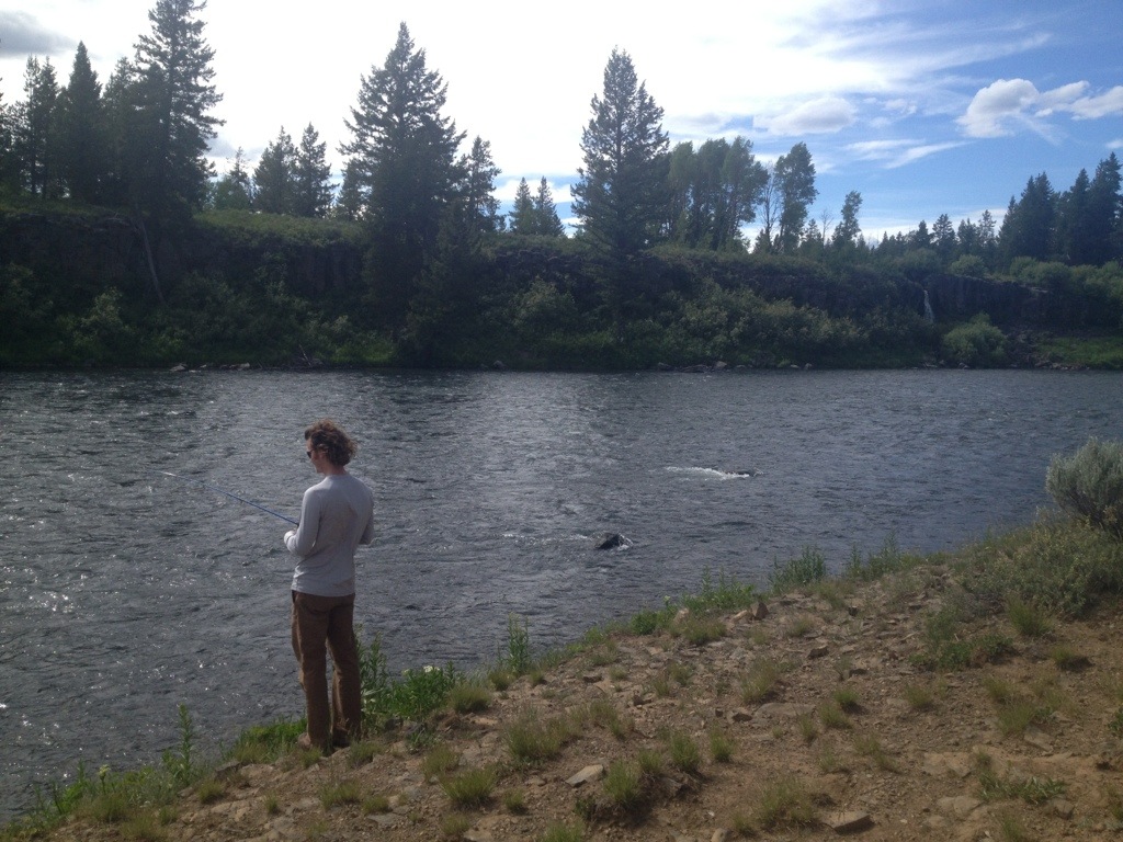 After some delicious egg and cheese burritos, we collected firewood for the evening campfire. Drove a bit further south to spend the day exploring the area around Island Park, Idaho. Saw some history at a preserved cabin near Big Springs, then explored a few areas of the Henry’s Fork portion of the Snake River, which is another renowned trout fishing river, but I was only able to catch a couple baby trout.