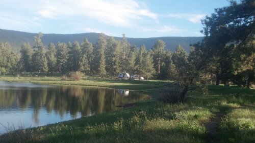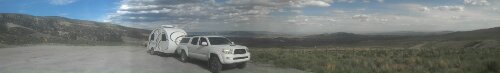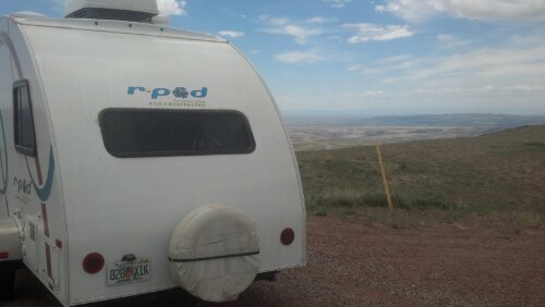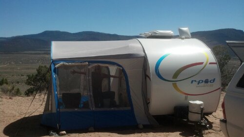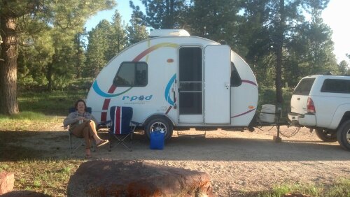 Packed up and drove down towards the river on Saturday morning. We were about out of water and the grey and black tanks were filling up. Conveniently found a dump station on the way down at a national forest campground. Pulled in and took care of it all, including a quick rinse of the truck and Rpod. Gets mighty dusty driving around on dry gravel roads.