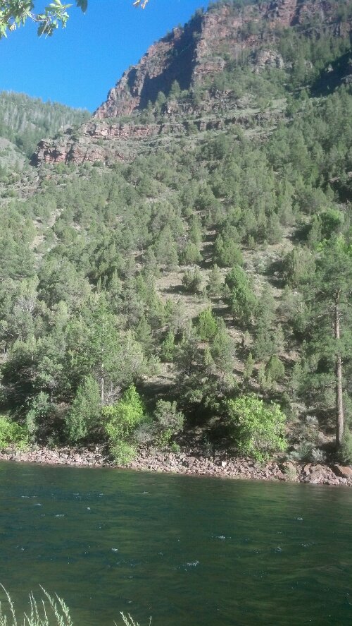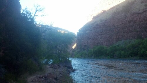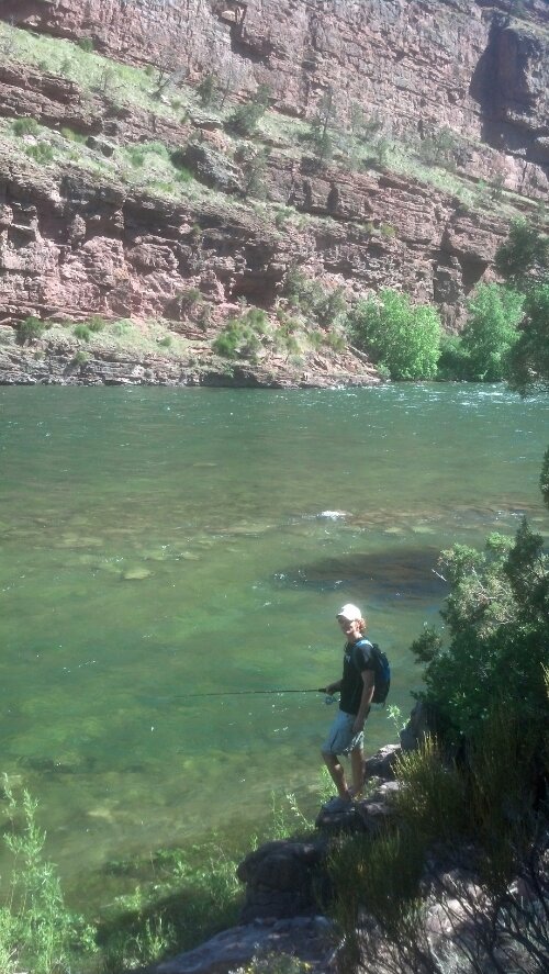 After getting the trailer set, we unhooked the truck and drove down to Little Hole trailhead. This has a trail which meanders alongside the Green River for about 7 miles downstream of the dam. From some quick reading online, this part of the river is world class for fly fishing, containing about 14,000 fish per mile. We ended up walking upstream just over 3 miles, then back down to the trailhead. Fished at various spots along the way, but only managed to catch one.