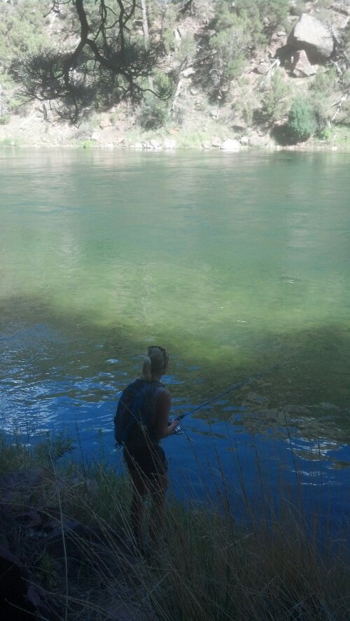 Drove back to the truck, packed up the backpack while Cindy made to-go sandwiches for lunch and we headed back towards Green River for more hiking and fishing. Decided to try the other end of the trail, so we parked up by the dam and walked downstream a couple miles. The winds had calmed down, so the conditions looked perfect. Ended the day with about 14 fish! A mix of rainbows and brook trout.