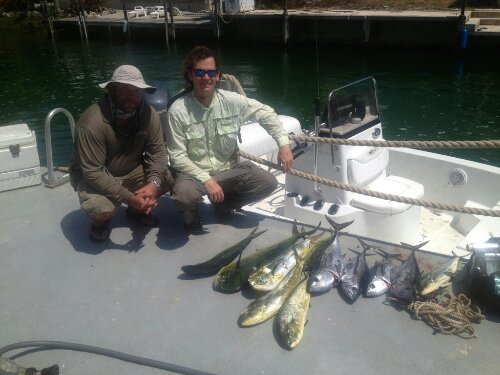 Up at 530am on Sunday, excited about catching some big fish! Weather conditions were looking optimal, so Michael and I loaded the boat and said our goodbyes to the ladies. A key feature at houses in the Keys if you like to fish is a commercial ice maker. Gonna take full advantage of that appliance during our stay. We were met with a beautiful sunrise on our journey southeast to the Maratha Humps. It’s a well known fishing spot about 27 miles away in the middle of the Gulf Stream. Arrived at the spot around 8 and starting trolling immediately. Only about 20 minutes into the fishing, we had our first strike! Pulled in a nice football sized Blackfin Tuna. I had never caught a blackfin before, so another fish crossed off my species-catch list. Spent the next couple hours trolling around the humps, ending the morning with 4 tunas. Should have been 5, but I let one off the hook.