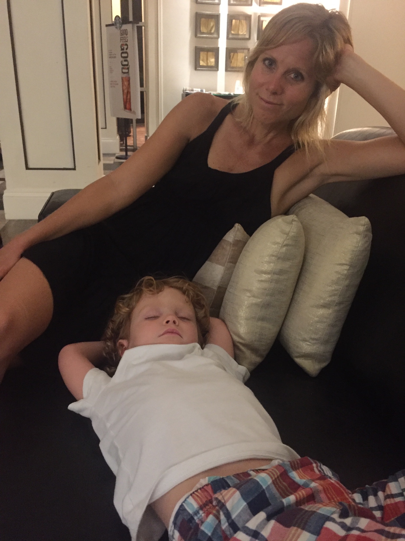 Comfy spot in the hotel lobby after dinner